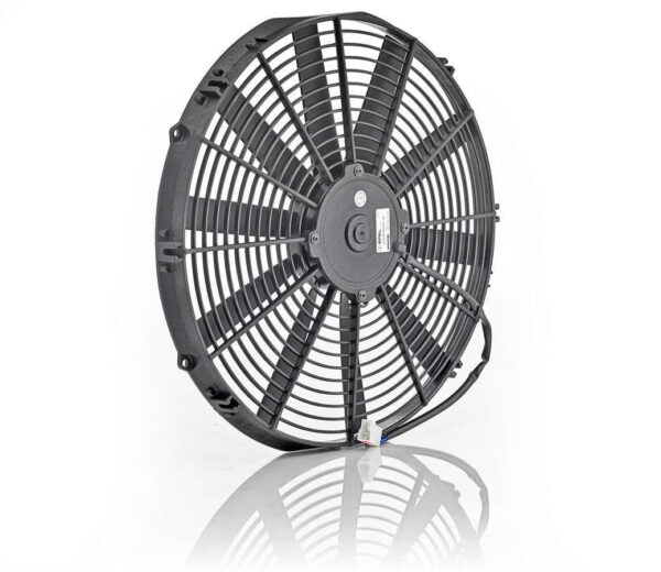 Electric Cooling Fan – Euro Black Thin Line – 16 in Fan – Puller – 1300 CFM – 12V – Straight Blade – 16 x 16 in – 2 in Thick – Plastic – Each