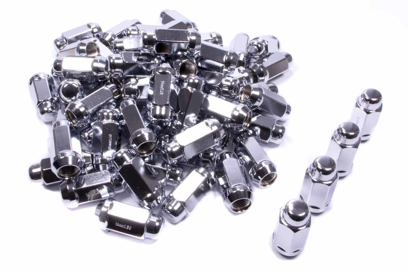 Lug Nut – Extra Long Acorn Bulge – 14 mm x 1.50 Right Hand Thread – 13/16 in Hex Head – 60 Degree Seat – Closed End – Steel – Chrome – Set of 60