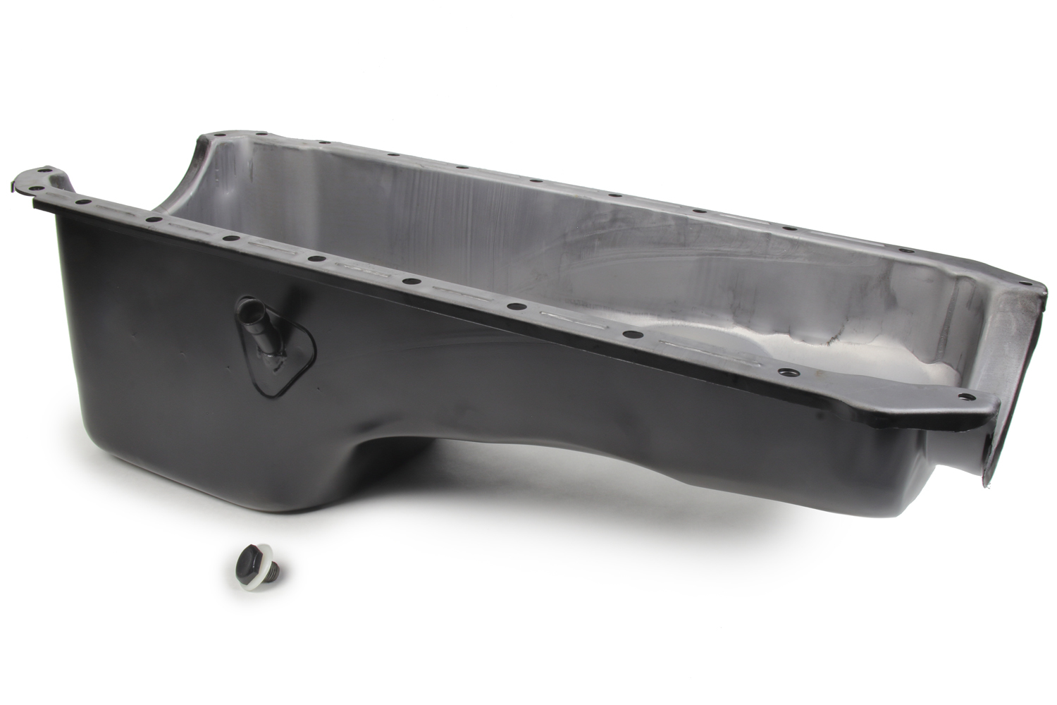 Engine Oil Pan – Rear Sump – 4 qt – Stock Depth – Steel – Black Paint – Big Block Chevy – Each