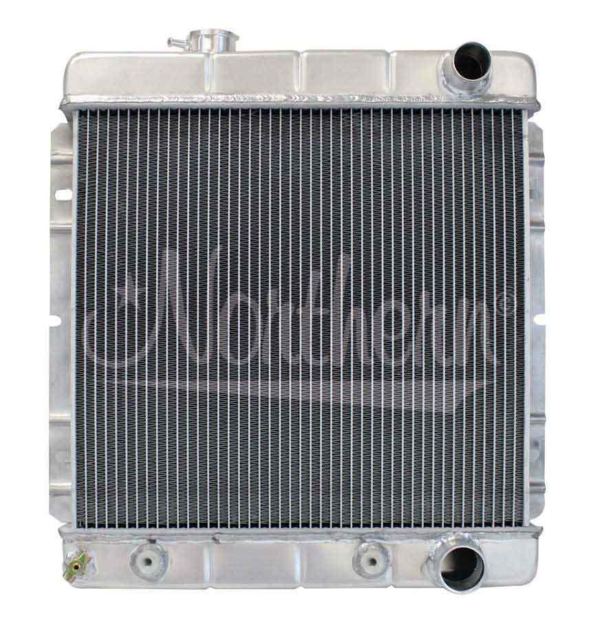 Radiator – 18.500 in W x 20.250 in H x 3.125 in D – Passenger Side Inlet – Passenger Side Outlet – Aluminum – Natural – Automatic – Ford Mustang 1964-66 – Each