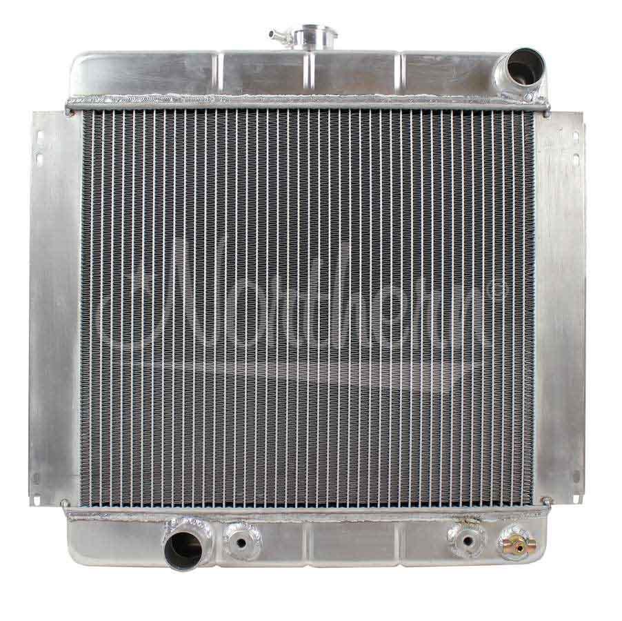 Radiator – 19.750 in W x 21.875 in H x 2.500 in D – Passenger Side Inlet – Driver Side Outlet – Aluminum – Natural – Automatic – Ford Mustang 1967-70 – Each