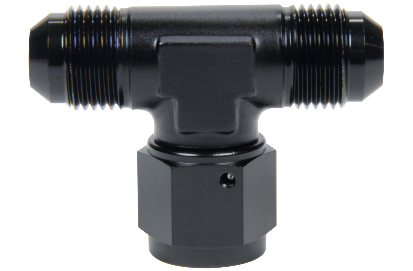 Fitting – Adapter Tee – 3 AN Male x 3 AN Male x 3 AN Female Swivel – Aluminum – Black Anodized – Each