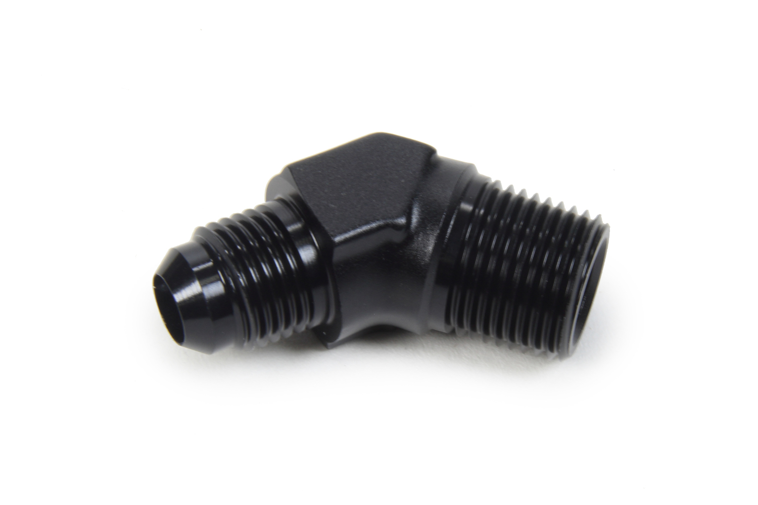 Fitting – Adapter – 45 Degree – 6 AN Male to 3/8 in NPT Male – Aluminum – Black Anodized – Each