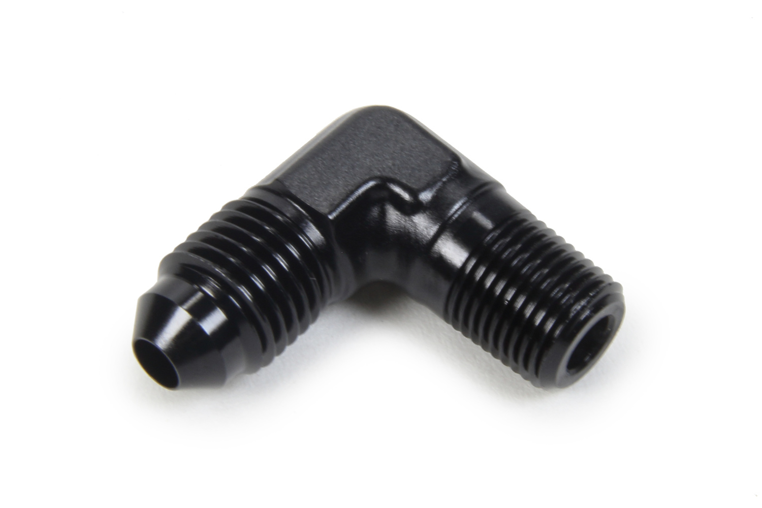Fitting – Adapter – 90 Degree – 4 AN Male to 1/8 in NPT Male – Aluminum – Black Anodized – Each