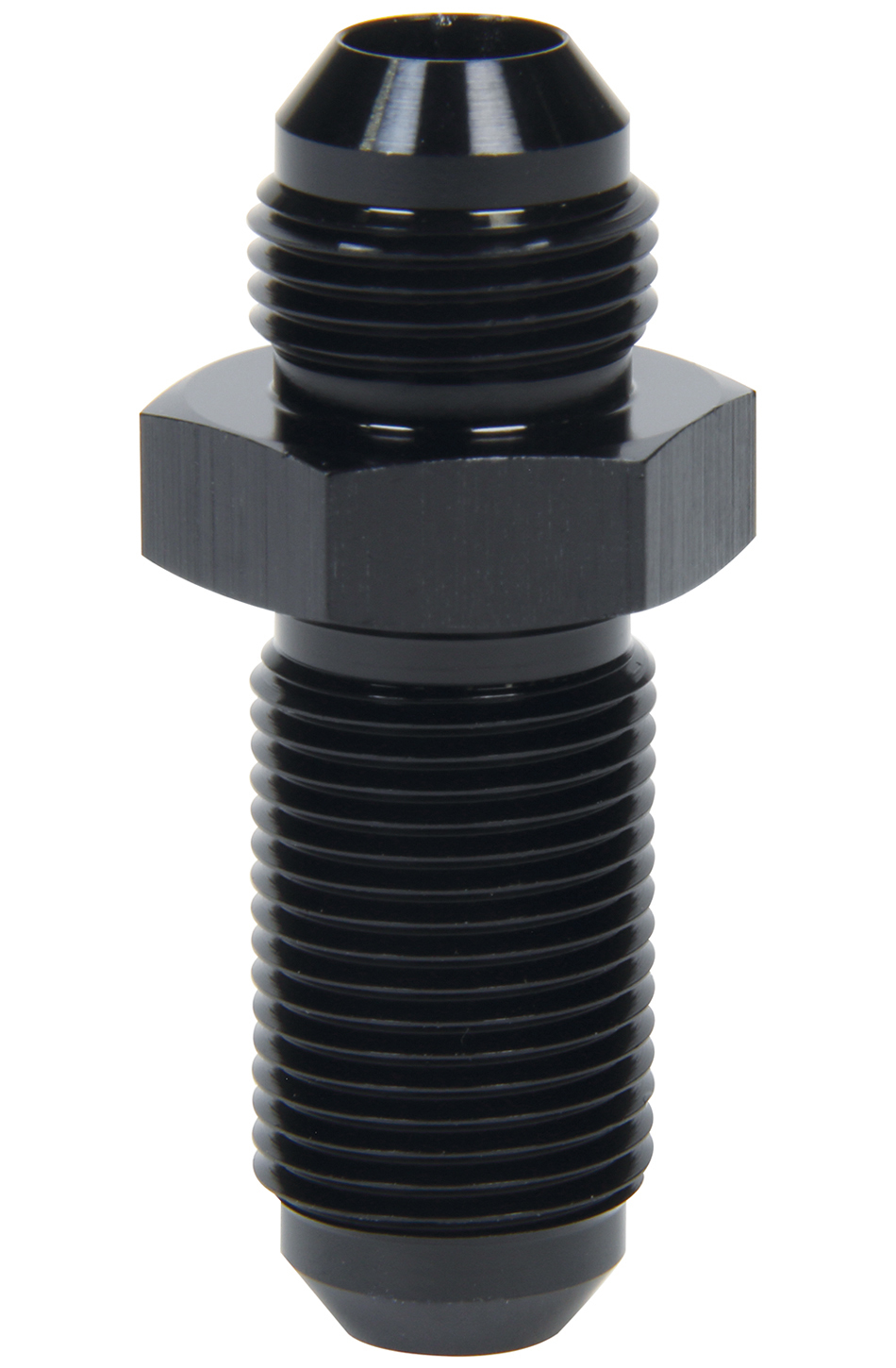 Fitting – Bulkhead – Straight – 8 AN Male to 8 AN Male Bulkhead – Aluminum – Black Anodized – Each
