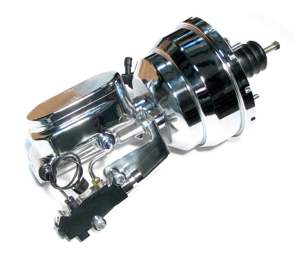 Master Cylinder and Booster – 1.125 in Bore – Dual Integral Reservoir – 8 in OD – Dual Diaphragm – Steel – Chrome – Universal – Kit