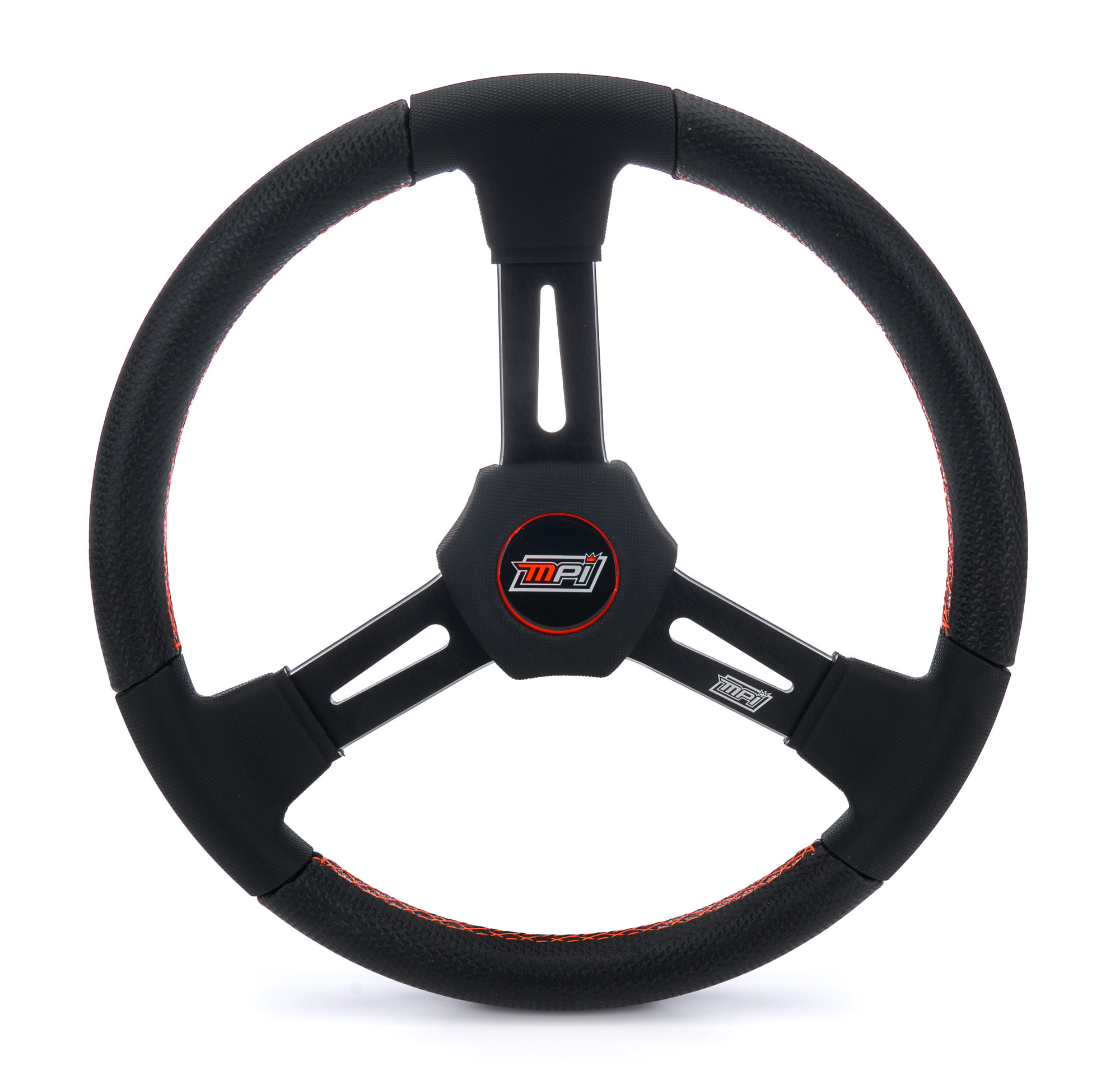 Steering Wheel – Dirt Racing – 15 in Diameter – Flat – 3-Spoke – X-Large Black Foam Grip – Aluminum – Black Anodized – Each