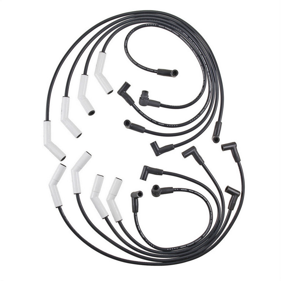 Spark Plug Wire Set – Extreme 9000 Ceramic – Spiral Core – 8 mm – Black – Factory Style Ceramic Plug Boots – Ford V8 – Kit