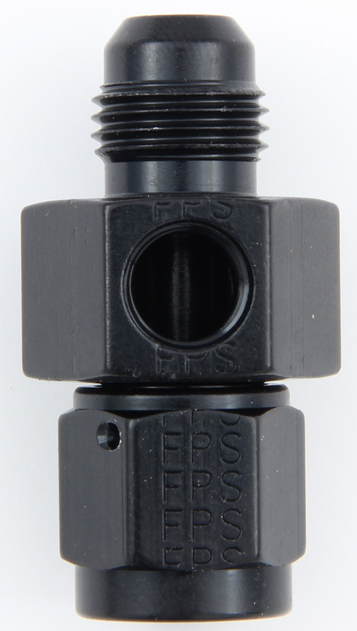 Fitting – Gauge Adapter – Straight – 6 AN Male to 6 AN Female – 1/8 in NPT Gauge Port – Aluminum – Black Anodized – Each