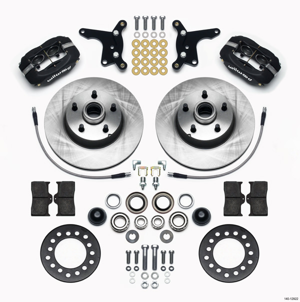 Brake System – Dynalite – Front – 4 Piston Caliper – 11.28 in Solid Iron Rotor – Steel – Black Powder Coat – Ford Fullsize Car / SUV 1954-56 – Kit