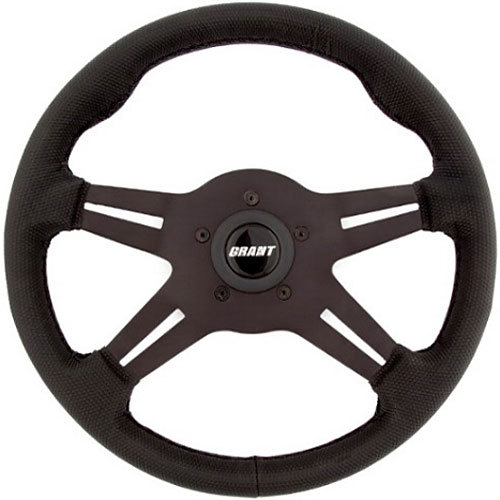 Steering Wheel – Gripper – 13 in Diameter – 1 in Dish – 4-Spoke – Black Diamond Textured Vinyl Grip – Aluminum – Black Anodized – Each