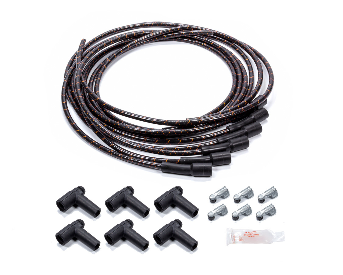 Spark Plug Wire Set – Spiral Core – 7.8 mm – Lacquer Covered Cotton Braid – Black / Orange – Straight Boots – HEI Style Terminal – Universal – Kit