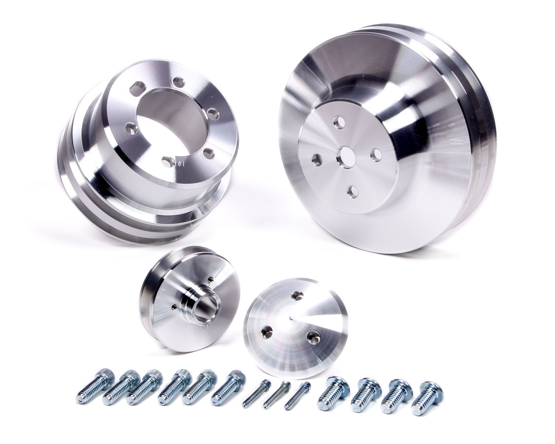 Pulley Kit – Performance Ratio – 2 Groove V-Belt – Aluminum – Clear Powder Coat – Mopar B / RB-Series / 426 Hemi – Kit