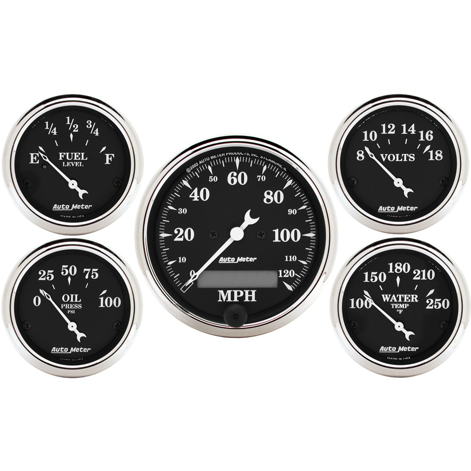 Gauge Kit – Old Tyme Black – Analog – Fuel Level / Oil Pressure / Speedometer / Voltmeter / Water Temperature – Black Face – Kit