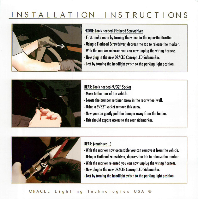 Concept SMD Sidemarker lights are complete side marker replacements fitted with high powered 3528 Bridgelux LEDs that produce a laser-like appearance. These are available with Clear or Tinted lenses and painted to match any of the factory paint codes. ORACLE Lighting is proud to offer the brightest side markers on the market to our customers. Do not be fooled by “too good to be true prices” ORACLE Lighting originated LED side markers, imitators don’t measure up to our quality.