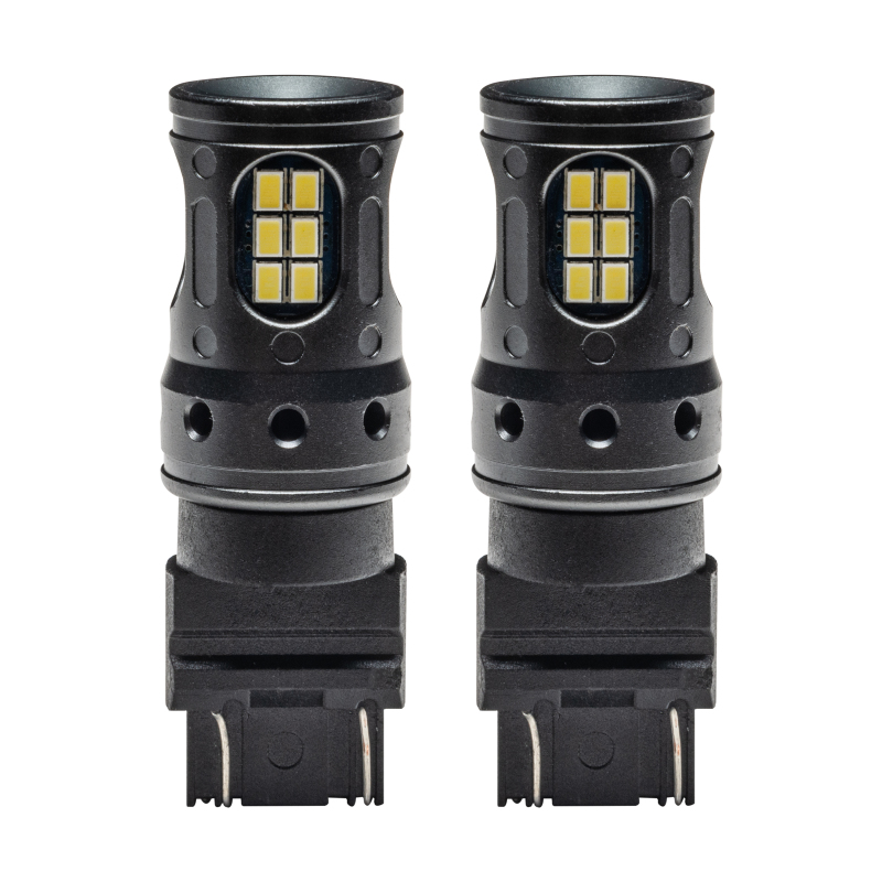 Dim reverse lighting can be dangerous and troublesome, especially when navigating larger trucks. Improve your visibility while backing up with the Extreme-Performance LED Reverse Light Bulbs from ORACLE Lighting! These WT21W reverse lights feature vibrant 3020 LEDs for maximum illumination on some of the most popular models, such as the 2021+ Ford Bronco, Maverick, F150, Super Duty, and more. With a 2196 Lumen output from each bulb, you’ll enjoy a reverse brightness that rivals your headlights. The Kelvin color of 6000K-6500K provides a more modern look to the rear end and improves backup visibility at night. The onboard constant-current driver ensures increased reliability, and the anodized aluminum construction offers leading durability. The installation takes only a few minutes with a direct-fit, plug-and-play design and error-free functionality. Simply remove the existing halogen bulbs and replace them with these super-bright LEDs! This kit contains 2x bulbs for a complete reverse light conversion. Improve your rear visibility with ORACLE Lighting and enjoy superior performance when it matters most!