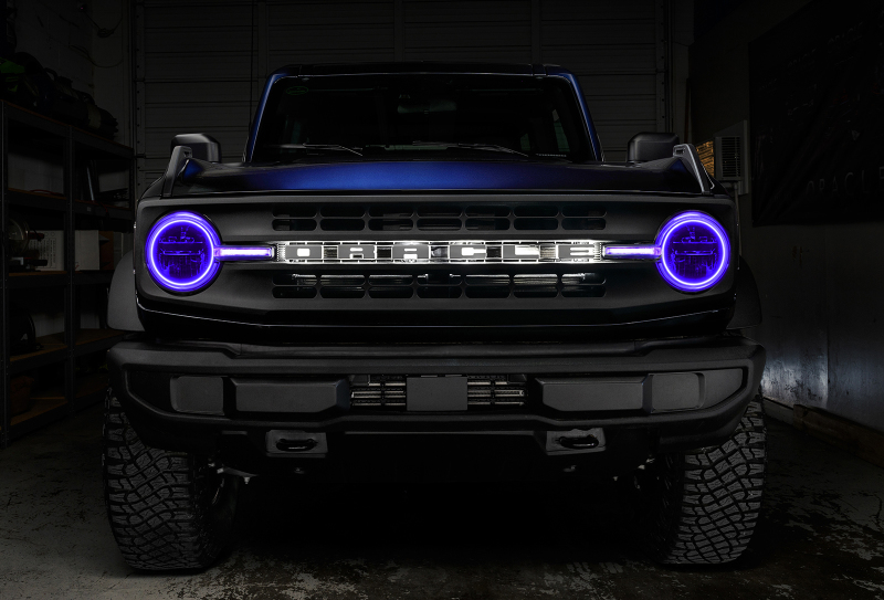 Looking to modify your vehicle’s headlights for a customized, eye-catching style? The ORACLE Lighting Halo kit with DRL Bar for the 2021-2022 Ford Bronco Base offers a perfect solution with an expertly-crafted design, brilliant colors with the best quality LED components, and unique features that will satisfy any truck enthusiast. While some vendors cut corners, we use advanced LED chips that produce an impressively bright output while consuming less power. Our SMD halos feature these chips installed onto a sturdy CAD-designed circuit board that easily mounts to a light housing using the pre-installed 3M adhesive tape backing. The additional DRL bar provides vibrant color into the turn signal portion of the light for impactful style across the front end. Easily control the halos and DRL bar with one of our easy-to-use controllers, which gives the user RGB control thanks to the 5050 tri-node LEDs that allow you to select any color imaginable. Using the latest lighting technology, our cutting-edge halo kits for trucks are a great way to personalize your ride with show-stopping looks and industry-leading performance. Stand out from the look-alikes with an ORACLE Lighting halo kit!