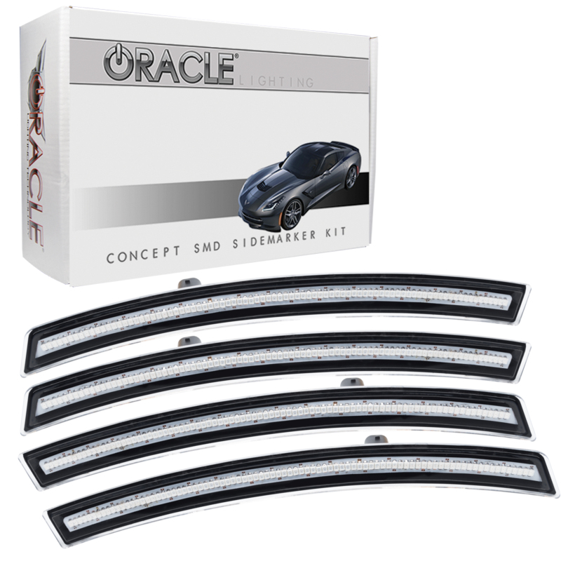 Concept SMD Sidemarker lights are complete side marker replacements for the C7 Chevy Corvette, fitted with high powered 2835 Bridgelux SMD LEDs that produce a laser-like appearance. Installation is easy! Just pop out the factory side markers and connect the new ORACLE Concept Side markers right into the stock plugs. Disclaimer: ORACLE Lighting offers these parts professionally painted to order. We strongly recommend using this painting service when ordering these parts. If you choose to paint these products yourself please note that parts not properly painted with a UV clearcoat will not be covered under warranty. The clearcoat protects the acrylic parts from harmful UV damage and fills any pinholes preventing moisture issues.