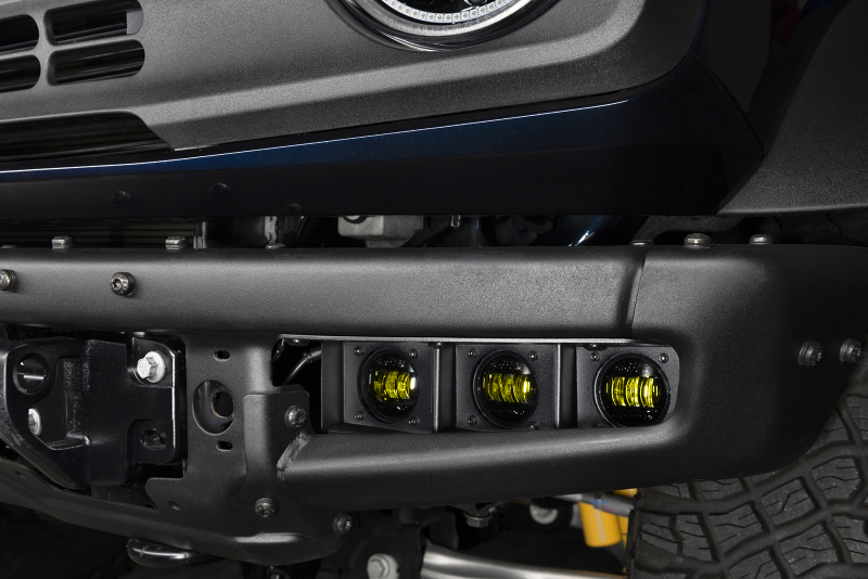 ORACLE Lighting has designed a LED triple fog light kit for the steel factory modular (?mod”) bumper on the 2021+ Ford Bronco. Quickly add functional forward-facing LED lighting to your vehicle to illuminate any adventure. The six high-powered emitters provide significant visibility through advanced optics with a 6000 raw Lumen output and a precise no-glare design that avoids blinding other drivers. The powder coat finish, blacked-out appearance, and IP68 waterproof rating offers a sleek look with superior durability to withstand any conditions. The simple bolt-on installation uses factory bolt locations and requires no drilling or modifications for the Bronco fog light kit. Typical installation time is under 30 minutes and can be successfully installed using common hand tools by even the most casual enthusiast. This complete kit includes 2 assembled steel housings, 6 LED Emitters, Wiring Harness, and all necessary hardware. Score first-class LED lighting that illuminates wherever your adventures take you with the ORACLE Lighting Ford Bronco Triple Fog Light Kit!