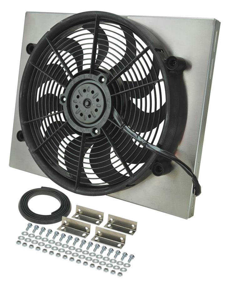 Electric Cooling Fan – HO RAD – 17 in Fan – Puller – 2400 CFM – 12V – Curved Blade – 21 x 16-3/4 in – 3 in Thick – Aluminum Shroud – Plastic – Kit
