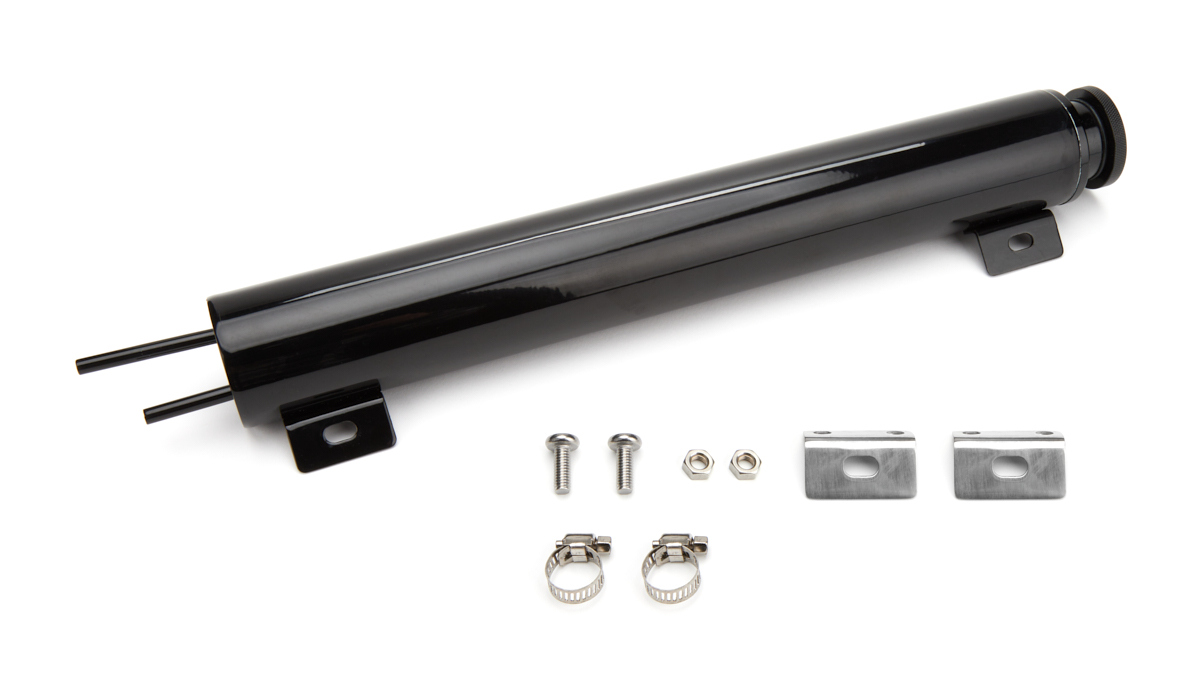 Overflow Tank – 22 oz – 15 in Tall – 2 in Diameter – 1/4 in Hose Barb Inlet – 1/4 in Hose Barb Outlet – Stainless – Black Powder Coat – Each