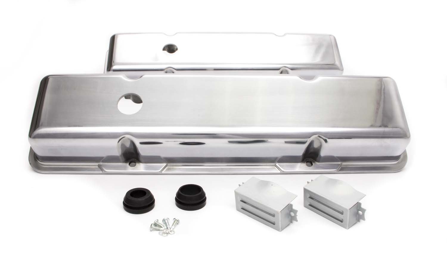 Valve Cover – Short – 2-9/16 in Height – Baffled – Breather Holes – Grommets Included – Aluminum – Polished – Small Block Chevy – Pair