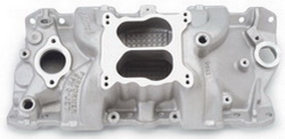 Intake Manifold – Performer RPM Q-Jet – Spread / Square Bore – Dual Plane – Aluminum – Natural – Small Block Chevy – Each