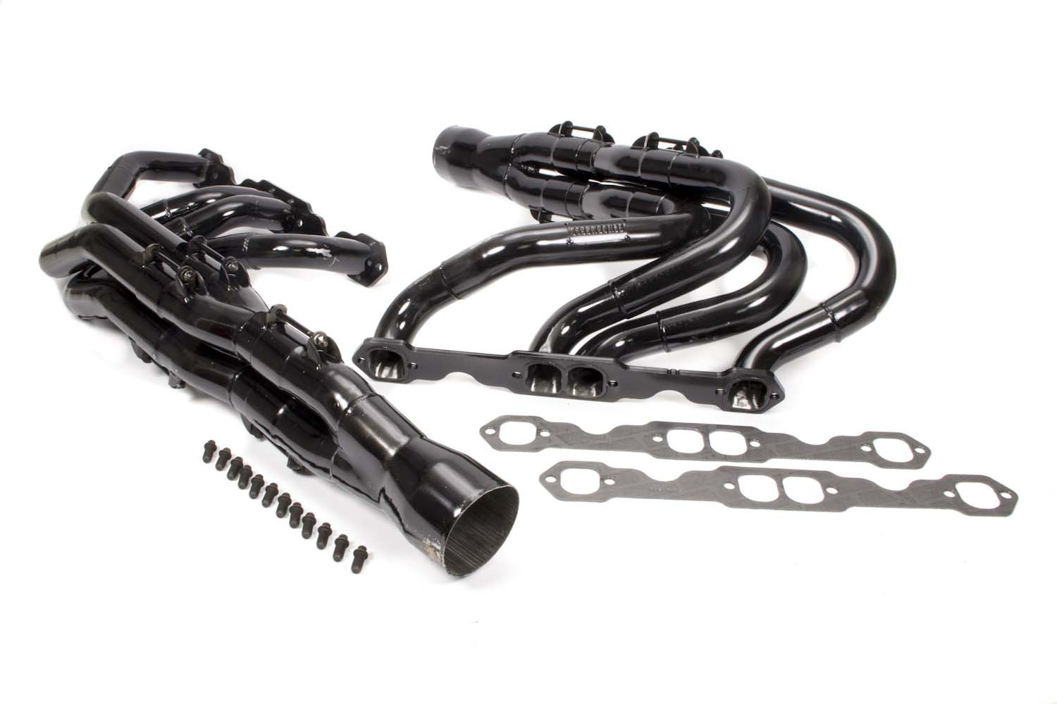 Headers – IMCA Modified Tri-Y – 1-3/4 to 1-7/8 in Primary – 3-1/2 in Collector – Steel – Black Paint – Small Block Chevy – Pair