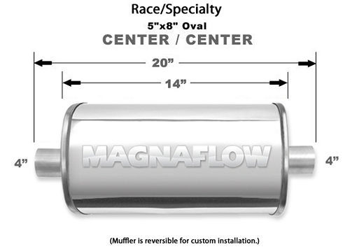 Muffler – Race Series – 4 in Center Inlet – 4 in Center Outlet – 14 x 8 x 5 in Oval Body – 20 in Long – Stainless – Polished – Universal – Each