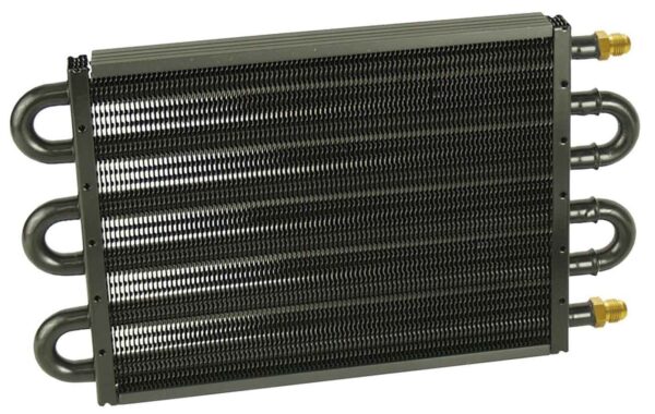Fluid Cooler – 13.500 x 7.625 x 0.750 in – Tube Type – 6 AN Male Inlet / Outlet – Aluminum – Black Powder Coat – Universal – Each